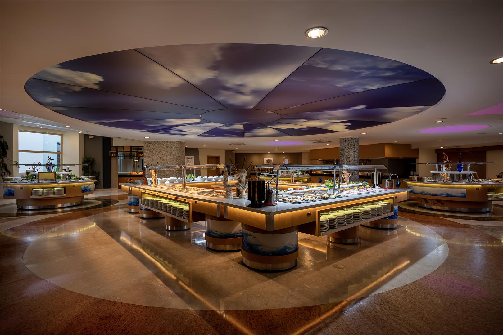 Eines der Erlebnisse, die unser Hotel mit Stolz bietet, ist die Gastronomie. Es bietet unseren Gästen ein unvergessliches kulinarisches Erlebnis mit seinem reichhaltigen Menü und köstlichen Optionen. Das Hauptrestaurant bietet eine Vielfalt an Geschmacksrichtungen ansprechend für jeden Geschmack. Unsere erfahrenen Köche präsentieren sorgfältig zubereitete Gerichte aus frischen und regionalen Zutaten. Darüber hinaus bietet das Hauptrestaurant neben den leckeren und gesunden Optionen die Möglichkeit, die exklusivsten Beispiele internationaler Küche zu erleben und verleiht Ihren unvergesslichen Urlaubserinnerungen eine köstliche Note.